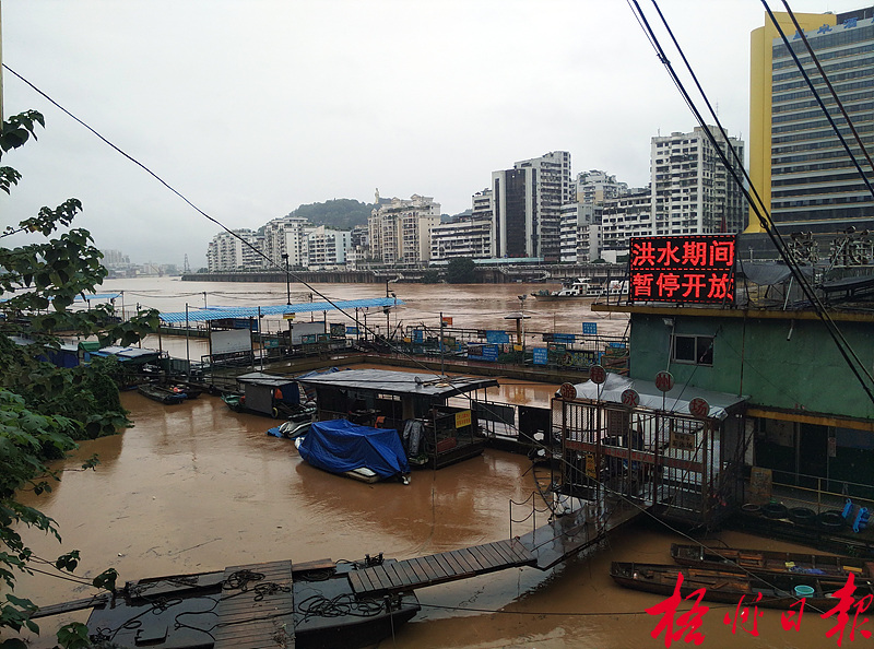 ??? 7月3日,河西水上游泳場外電子顯示屏打出了“洪水期間,暫停開放”的字樣。由于近日我市江河水位上漲迅速,3日開始,河西水上游泳場暫停對外開放。 李鴻榮 攝