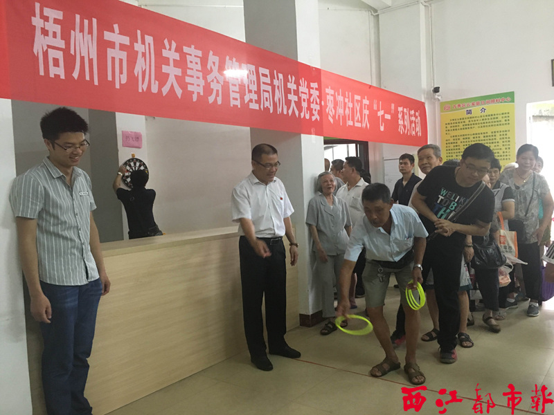 7月7日上午,梧州市萬秀區棗沖社區聯合“雙報到”單位梧州市機關事務管理局,在該社區云家庭日間照料中心,開展“七一”游園系列活動。活動通過開展黨建知識問答、乒乓球比賽、拋圈游戲等形式,促進黨員與社區群眾的交流。 本報記者 紀榮蘭 攝