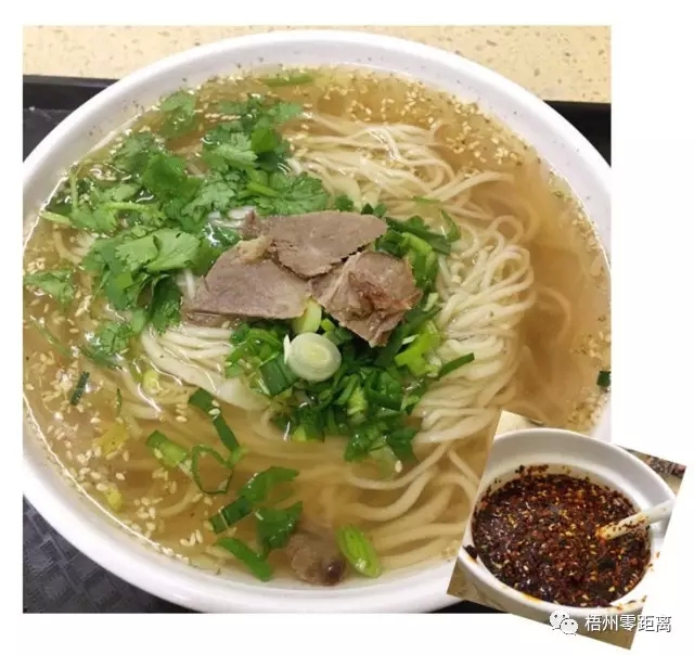 蘭州拉面配上店內(nèi)的噴香辣椒油,一個(gè)字:正! ????如果說(shuō)湯是蘭州拉面的靈魂的話,那么面就是它的筋骨了。蘭州拉面的面條通常由店內(nèi)師傅手工抻拉制成,為了讓拉面更筋道柔韌,揉面時(shí)需要適時(shí)控制臂力、腕力,再經(jīng)過(guò)揉、彈、拉、甩,最終把一塊大面團(tuán)拉成千絲萬(wàn)縷的面條。下鍋輕燙幾分鐘后,澆上鮮香的牛肉高湯,再配上幾片入口嫩而不爛的牛肉,“湯鏡者清,面細(xì)者精,肉爛者香”,零妹每次去吃都要吃個(gè)碗底朝天才舍得放下。 ? 店里的牛肉燴面也是零妹最愛! ????推薦地點(diǎn) ????鑒于梧州市的蘭州拉面有近10家,零妹就直接上圖了