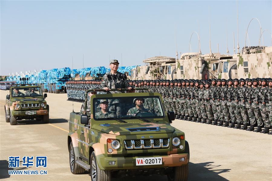 ??? 7月30日上午,慶祝中國人民解放軍建軍90周年閱兵在朱日和聯合訓練基地隆重舉行。中共中央總書記、國家主席、中央軍委主席習近平檢閱部隊并發表重要講話。這是習近平乘車檢閱部隊。新華社記者 李剛 攝