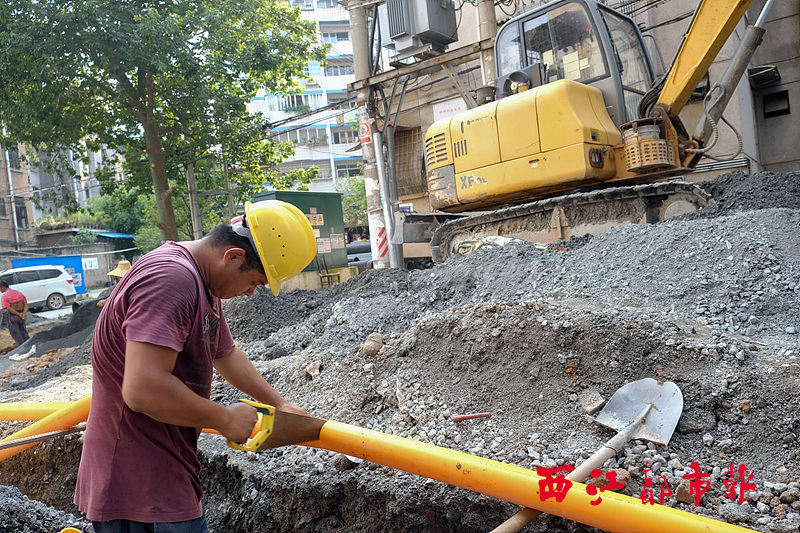 ????8月2日,施工人員在富民棚戶改造區華光巷路段鋪設天然氣管道。