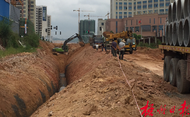 8月4日,在紅嶺17號路,施工隊伍正埋設管道。
