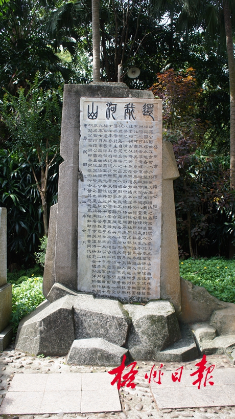 ??? 由市長黃同仇撰寫碑文的“還我河山”石碑。 ????■延伸閱讀 ??? 梧州大事記 ??? 中華民國(1912年~1949年) ??? ●民國9年(1920年) ????6月 梧州洪水 最高水位達(dá)21.61米。 ????9月 在梧州成立粵梧輪渡船務(wù)工會(huì)。其會(huì)員為粵梧航線輪渡的工人。 ????是年 長洲年產(chǎn)裝撈魚苗38億尾,居全國之冠。 ????進(jìn)出口貿(mào)易總值為1771.24萬關(guān)平銀兩,其中進(jìn)口貨值1183.83萬關(guān)平銀兩;進(jìn)出口關(guān)稅收入為52.32萬關(guān)平銀兩,占廣西三關(guān)總和的80.68%。 ????●民國10年(1921年) ????8月 港梧輪船總工會(huì)桂省分會(huì)在梧州成立。同年10月孫中山出巡廣西途經(jīng)梧州時(shí),他將該工會(huì)更名為中華內(nèi)河輪船總工會(huì)桂省分會(huì)。 ????廣東省無線電管理局在梧州三角嘴娛園山(今珠山)建長波無線電一座。這是廣西創(chuàng)立無線電報(bào)之始(一說是1919年)。 ????10月8日 梧州成立市政廳,粵軍委孫中山的女婿戴思賽為廳長。 ????10月17日下午4時(shí) 孫中山到達(dá)梧州。孫中山一行是于本月15日在廣州乘“寶壁”軍艦出巡廣西的。隨行人員有胡漢民、徐維揚(yáng)、陳少白、鄧家彥、焦易堂及總統(tǒng)府參軍等20余人。 ????10月18日 孫中山乘淺水巡輪“廣明”號(hào)離開梧州前往南寧。 ????10月29日 孫中山由南寧抵達(dá)梧州,在梧州駐節(jié)16天。孫中山駐節(jié)梧州期間,組織隨同行動(dòng)的大本營。大本營分秘書處、參軍處、輜重大隊(duì)等部門。 ????10月 宋慶齡到達(dá)梧州。11月中旬,宋慶齡由梧返粵備行裝。12月21日,宋慶齡經(jīng)梧州抵達(dá)桂林。民國11年(1922年)4月,她隨孫中山返梧州。19日,孫中山派船送宋慶齡先回廣州。 ????11月上旬 孫中山在梧州國民黨員歡迎會(huì)上發(fā)表題為《黨員須研究革命主義》的演講。 ????11月15日 孫中山離開梧州前往桂林,籌備北伐。 ????是年 廣東商人黎祝林合股創(chuàng)辦梧州火柴廠,民國23年(1934年)被廣東東山火柴廠兼并,改名為廣西火柴廠。 ????梧州開始有“花尾渡”載運(yùn)客貨行駛。 ????進(jìn)出口貿(mào)易下降,總值為1164.65萬關(guān)平銀兩,其中進(jìn)口貨值120.69萬關(guān)平銀兩;進(jìn)出口關(guān)稅收入為46.29萬關(guān)平銀兩,占廣西三關(guān)總和的82.31%。 ????●民國11年(1922年) ????1月2日 大總統(tǒng)孫中山在梧州設(shè)中央銀行,任命陳少白為監(jiān)督,梁長海為行長。 ????1月 梧州海員響應(yīng)香港海員罷工,反對(duì)外國侵略。港梧線、穗梧線各輪船皆停航。 ????2月 梧州發(fā)生火災(zāi),毀屋199間,損失100萬元以上。 ????3月 中國社會(huì)主義青年團(tuán)梧州分團(tuán)成立。 ????4月16日 孫中山偕許崇智,胡漢民、宋慶齡等從桂林抵達(dá)梧州。旋即召開擴(kuò)大軍事會(huì)議,決定“出師江西,悉命諸軍集中韶關(guān)。大本營設(shè)于韶關(guān)。” ????4月20日 孫中山偕許崇智,胡漢民、魏邦平乘“江漢”艦離梧州回廣州。 ????是年 梧州土貨輪輸入額為246033關(guān)平銀兩,南寧為741707關(guān)平銀兩;出口額梧州為298.7萬關(guān)平銀兩,南寧為65.1萬關(guān)平銀兩。進(jìn)出口貿(mào)易總值為724.86萬關(guān)平銀兩,其中進(jìn)口貨426.13萬關(guān)平銀兩;進(jìn)出口關(guān)稅收入為28.06萬關(guān)平銀兩,占廣西三關(guān)總和的81.28%。 |