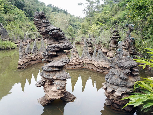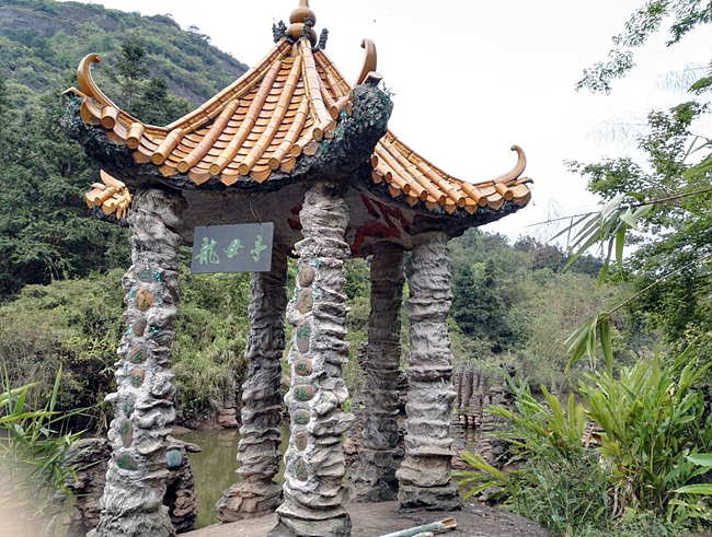 曾春鳳/文 歐偉文/攝 劉禹錫說得好:“山不在高,有仙則名;水不在深,有龍則靈。”藤縣濛江鎮(zhèn)雙德村境內(nèi)的龍母山,是太平獅山的余脈,山不高,卻蘊涵了深厚的龍母文化,且集“怪瀑、奇石、古藤”于一體而小有名氣。置身那古樸幽深的環(huán)境,確實令人心曠神怡,流連忘返。 一個陰晴不定的周末,我們十多位文友相約龍母山探幽。 龍母亭。 濃縮桂林山水特點的人工假山。龍母山腳的幾畝方塘,人工筑建了幾十個形態(tài)各異的假山,幾乎濃縮了桂林山水的全部景點,名曰“桂林湖”。“桂林湖”湖水清澈平靜,山色空濛,樹影綽綽,朱熹的“半畝方塘一鑒開,天光云影共徘徊”恰好詩情入畫意,真真應(yīng)景。“問渠哪得清如許?為有源頭活水來。”聽說,一條清澈見底的小溪貫穿了整條峽谷,為探源頭活水,我們放棄常規(guī)登山路,循著潺潺的溪流聲,向“怪瀑”深谷挺進。 風(fēng)吹山野綠,梅開小院春。不走出去,怎知春色深幾許?曲徑通幽處,青蘿拂行衣,我們漸行漸深,只見薄薄嵐煙彌漫林間,如夢如幻般縹緲,恍惚間有誤入仙境的幻覺。山里真有神仙嗎?我心生疑惑。 傳說,龍母是百越族的女首領(lǐng),她勤勞善良,聰明靈巧,不僅養(yǎng)育五龍,還救死扶傷,一生以“利澤天下”為己任,受到西江流域和東南亞華人的尊敬和崇拜。此山便是她不畏艱險采摘草藥,為百姓煉制靈丹的地方,龍母山因此而得名。 別具特色的建筑群。山中植被十分豐富,各種灌木叢生,野草蔓延,參差不齊地由著性子瘋長。各種野花爭妍斗奇,濃妝淡抹,粉墨登場,多像一場山間的選美大賽呢。你看,豆蔻花舞動綠裙長袖,時而半抱琵琶羞脈脈,時而嫣然一笑傾人城;捻子花涂抹了艷麗的口紅,躲在蕨葉后暗自得意呢!三角梅臨風(fēng)妖嬈,暗香浮動,風(fēng)情萬種,還有梧桐花、羅顯花、金英花……每一株植物都展示了生命的豐富多彩。 行至開闊處,忽遇一汪泉水,流泉清淺,漫過雜亂無章的石頭,墨綠的青苔裹著渾圓的山石,乍一瞥,以為龍母為我們備了冰鎮(zhèn)西瓜哩!得益于泉水的滋潤,四周水草肥美,青翠欲滴,古藤老樹郁郁蔥蔥,茂密的葉子遮天蔽日。碗口粗的藤蔓如龍騰,似蛇爬,更像練過瑜伽的千年女妖,柔若無骨的腰肢纏上老樹,纏上巨石,布下的天羅地網(wǎng),讓樹老爺、石大哥情劫難逃,其實也不想逃吧?“世上只有藤纏樹喲……”劉三姐的山歌破譯了大自然愛的密碼。 “哇哇!好涼快哪!”同行幾個丫頭開始掬水而戲,樂成一片,“咔嚓咔嚓”按下相機快門,定格忘形的瞬間。我彎腰捧起一口,泉水淳甜清冽,堪比瓊漿玉液啊!腦海里不禁閃過一句唐詩來:“空山新雨后,天氣晚來秋。明月松間照,清泉石上流……”此時雖不是晚來秋,也無明月相照,空氣卻十分清新,沁人心脾,有種洗盡鉛華的與世無爭,純澈寧靜之感。 溪流途經(jīng)之處,亦如人生軌跡,有平緩,有湍急,遇頑石擋道時,流水總會巧妙地繞過去,不爭,不辯,如智者迂回婉轉(zhuǎn),淡定從容。 一線天。峽谷由于山洪的沖擊,形成千奇百怪的大坑,有的深不可測,有的窄若一線天,有的坑中有洞,真使人嘖嘖稱奇。龐大的石塊隨處可見,或平如臺,或覆如蓋,或疊如梯,一如既往的布滿苔蘚,滋生著滲骨的清涼。從樹葉上瀉下的幾縷陽光,落在青苔上,光影交錯,斑斑駁駁,煞是好看。時隱時現(xiàn)的山泉像愛捉迷藏的調(diào)皮孩子,有時只聞其聲不見其影,涓涓細流清音,襯著彼此起伏的清脆鳥鳴聲,更添幾分幽深和神秘。這一切,仿佛就是王維山水詩的寫照:“空山不見人,但聞人語響。返景入深林,復(fù)照青苔上。” 四兩頂千斤。荒草沒山徑,小路蜿蜒卻不陡峭,“怪瀑”景點恰好就在“行到山窮處,坐看云起時”。峽谷盡頭,視野豁然開朗,一組小小的瀑布群立即映入眼簾。峽谷經(jīng)過千百年來流水的沖刷,水滴石穿,形成了一排不規(guī)則的壺穴奇觀。最高處的石潭一泓碧水,清如明鏡,泉水從巖縫涌瀉而下,落差雖不大,卻也飛珠濺玉,煙波蒸騰,霧靄彌漫,激起的水花,如勁風(fēng)吹雪,如白梅吐蕊,在陽光下閃爍、跳躍。細聽四野,但聞飛瀑激越,深潭聲聲奏瑤琴;泉水叮咚,白石隱隱鳴玉佩。須臾再聽,又如“銀瓶乍破水漿迸,大珠小珠落玉盤”,大自然的天籟之音,高山流水,琴瑟和鳴,真是“如聽仙樂耳暫明”啊! 龍母山,一處原生態(tài)的人間仙境,以母儀龍德的胸懷容納草木溪石,飛禽走獸。龍母山,讓每個游人眉目清朗,攜著泉水漂洗過的清心,愉快歸去。 |