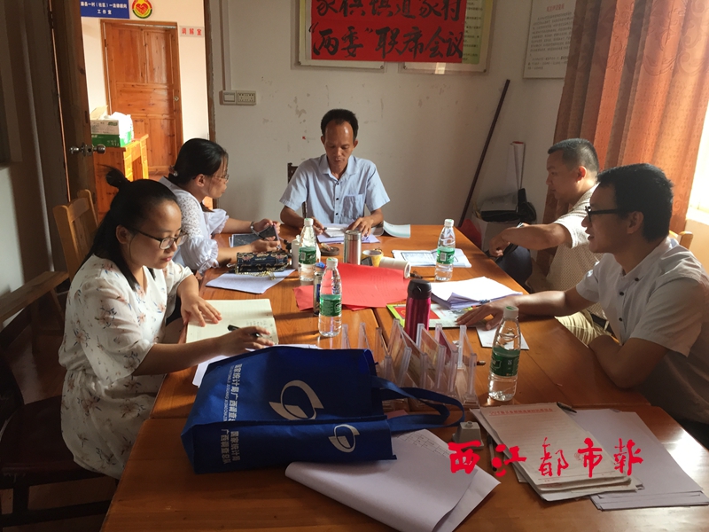 ??? 8月9日,在藤縣象棋鎮道家村村委,國家統計局藤縣調查隊的工作人員對該村主要資料開展核查工作。