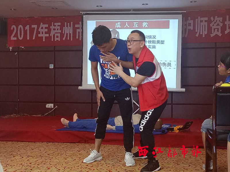 ????梧州市紅十字會應急救護師資培訓班8月11日在梧州興悅酒店正式開班,來自全市各行各業的46名學員將接受為期6天的應急救護培訓。據了解,此次培訓邀請了廣西紅十字會應急救護培訓專家授課,培訓內容包括救護概論與教學法、心肺復蘇與創傷救護、常見急癥與避險逃生、常見疾病處置技術方法等。學員學習結束通過考核后,將由廣西紅十字會頒發紅十字會救護培訓師資證。