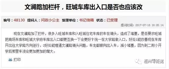 ??? 其實,在設置的初期,市民一度對于這近乎“空降”的隔離護欄感到不適應。梧州零距離網“零距離問政”平臺上,有網友問政表達自己的疑惑,稱文瀾路安裝隔離護欄后,旺城廣場停車場與旺城大學府出入口是否需要更換,以改善交通狀況。