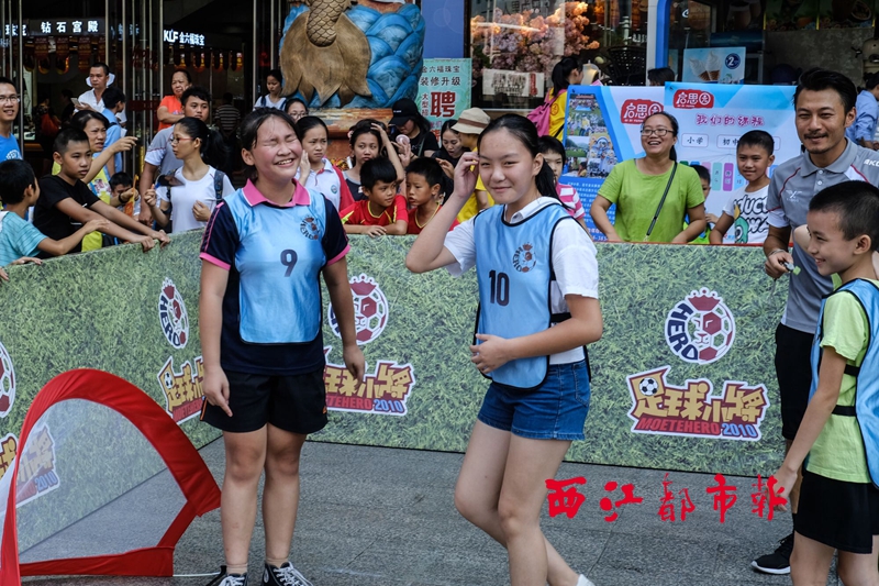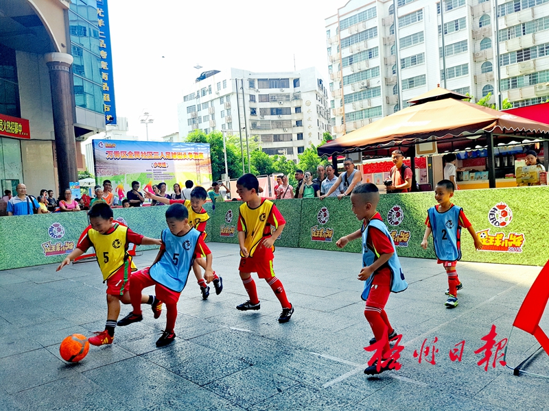 8月19日,在太陽廣場,少兒選手參加萬秀區(qū)全民社區(qū)三人足球街頭爭霸賽少年組比賽。此次比賽由萬秀區(qū)政府、市體育局主辦,吸引南中、民主、西環(huán)等8個社區(qū)近70名少兒參加。小選手們通過足球賽、繞桿競賽、點球大戰(zhàn)等活動,體驗足球運動的魅力。 梧州日報 曾韻 攝