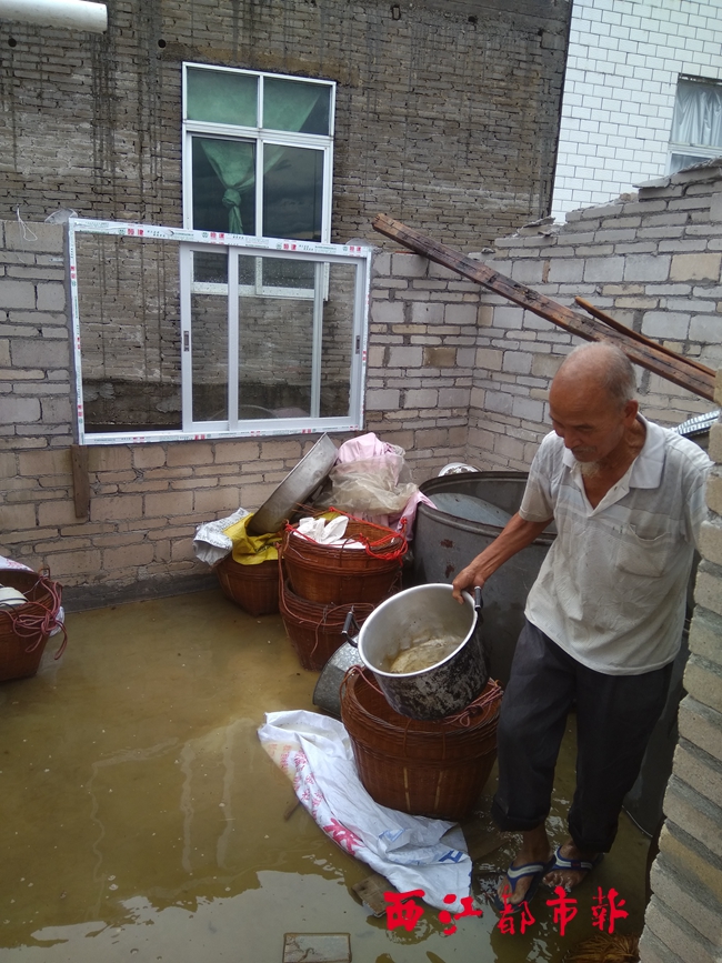 臺風過后,陳昭全整理家中被泡在水里的物品。西江都市報記者 龍天傳 攝