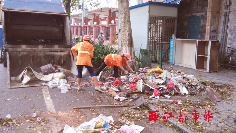 8月24日,環(huán)衛(wèi)工人在清理臺風(fēng)過后產(chǎn)生的垃圾。西江都市報記者 萬立平 攝