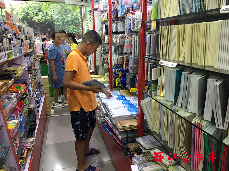 8月26日,在大塘小學附近的一家書店,學生和家長在購買作業本、文具等物品,為開學做準備。 萬立平 攝