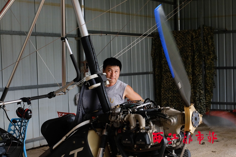 每次飛行前,扈劍都要給螺旋槳“熱身”。