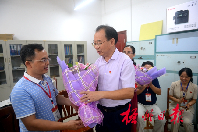 ??? 朱學慶來到梧州高中,走進數學、政治學科教研組,與年輕教師親切交談,分享自己的求學經歷,深情回憶起學生時代遇到的好老師。朱學慶勉勵青年教師繼續奮發進取,勤于鉆研提高,增強教書育人本領。朱學慶還考察了該校借助互聯網技術開設的“空中課堂”,鼓勵學校繼續創新教學手段,認真學習借鑒外地先進的辦學理念和經驗,提升教學質量。在與該校優秀教師代表譚遠森、孔穎婷座談時,朱學慶與兩位老師親切交談,了解工作心得,探討教學方式,勉勵他們發揮示范作用,幫助更多年輕教師成為“行家里手”。他指出,全市廣大教師長期以來堅持立足崗位,教書育人,付出了大量心血和精力,為梧州經濟社會發展培養了大批合格人才。全社會要進一步弘揚尊師重教的優良傳統,繼續加大教育投入、保障教師待遇,營造關心教師、支持教育的濃厚氛圍,為教育事業發展提供強有力保障。