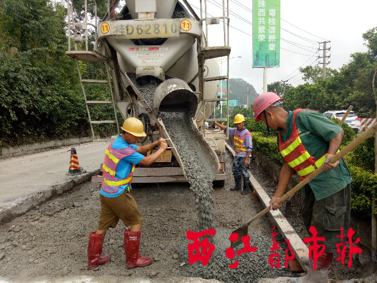 9月7日,在云龍大橋北橋頭至東出口的一段公路上,市政部門的施工人員在路面上鋪設混凝土。據悉,東出口片區道路升級改造工程自8月23日開工以來,已完成約六成的總工程量,計劃在9月20日前完工。