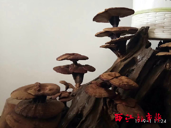 ????就這樣,夫妻倆相互扶持熬過了一段艱難的日子。2007年,鄧紫金培育出少量盆景靈芝,并通過朋友間的口碑相傳,漸漸引起當(dāng)?shù)厝罕姷暮闷婧完P(guān)注。每次,他把這種盆景靈芝推向市場去叫賣,都引來眾人圍觀,并有人愿意掏錢購買。“當(dāng)?shù)谝淮螖?shù)著靠賣靈芝換來的錢時(shí),雖然這錢并不多,但我們夫妻倆心里充滿成就感。”鄧紫金說。