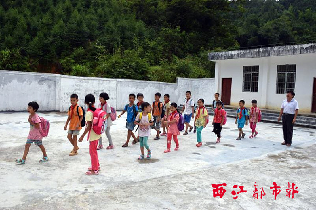 ????9月6日下午放學時,孩子們高興地離開小小的校園。聽到孩子的笑聲,郭永偉的臉上露出了笑容。 董娜 攝