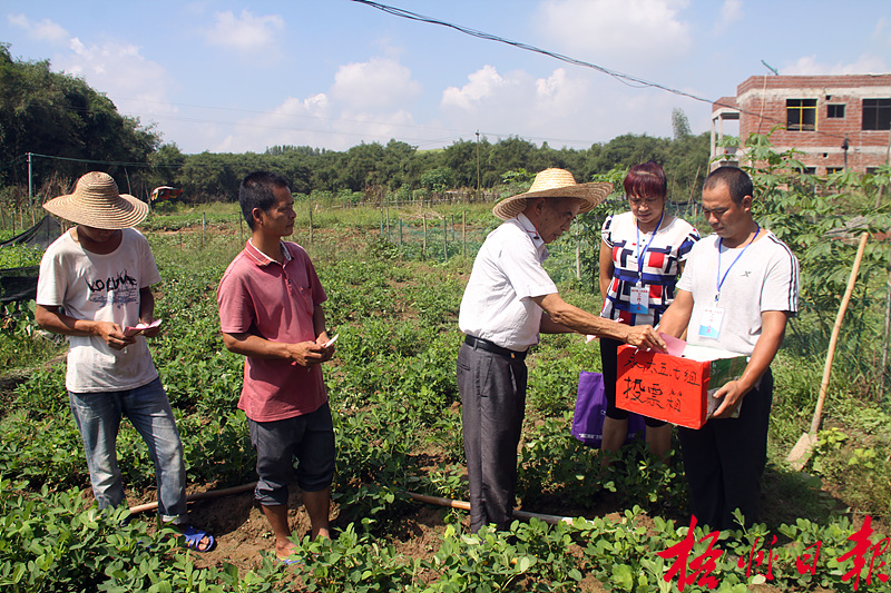 ????9月9日,在藤縣塘步鎮汗池村的田間地頭,鎮、村干部帶上流動票箱讓選民投票選舉村民委員會成員。