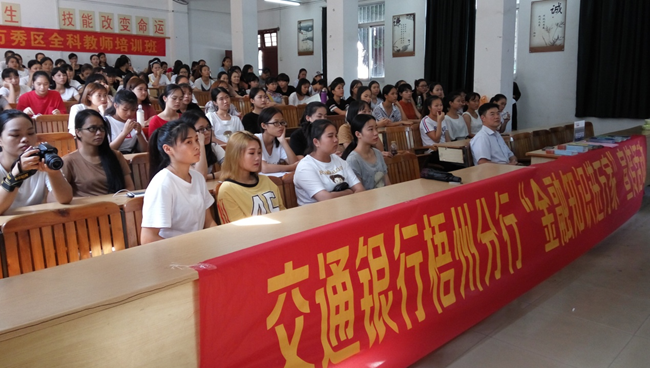????在微風(fēng)徐徐的九月,交通銀行梧州分行響應(yīng)金融監(jiān)管部門、團中央、教育部關(guān)于開展金融知識進校園的號召,圍繞“正確使用金融服務(wù),依法維護滋生權(quán)益”主題,于9月8日,組織宣傳活動小分隊,再次走進梧州學(xué)院,為該校師范學(xué)院的新晉大學(xué)新生們“度身定做”舉辦了一場“警惕校園貸、預(yù)防電信詐騙和大學(xué)生誠信教育”專題宣傳教育培訓(xùn)活動。