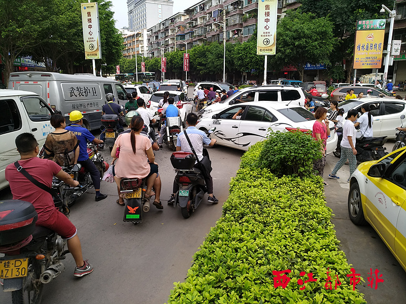 ????9月11日上午8時許,在新興二路新聞路路口,大批車輛堵塞在道路上。