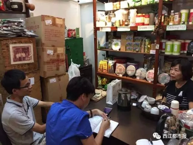 在南洋地區(qū),新加坡是一個最重要的中轉(zhuǎn)站。據(jù)《東南亞概述》記載,新加坡舊稱“石叻坡”,是東南亞地區(qū)重要的華埠。而據(jù)新加坡牛車水原貌館的資料顯示,19世紀(jì),中國飽受自然災(zāi)害的侵襲,加上社會長期動蕩,大量處于社會底層的群眾生活困苦,他們不得不冒險遠(yuǎn)渡重洋,到南洋地區(qū)謀生。其中,到達(dá)新加坡的華人被稱為“新客”。南來的“新客”逐年增加,使新加坡華人人口劇增。1824年,新加坡華人僅有3317人,到了1901年,就增至164041人,這個人數(shù)還不包括收留在合法豬仔館內(nèi)暫時逗留的“新客”。來到新加坡的“新客”中,有很多人來自兩廣地區(qū)。而20世紀(jì)初期,隨著中國放寬對婦女的出入境管制,大批華人女性也到南洋謀生,如充當(dāng)家庭傭人或到工廠丶建筑工地當(dāng)工人。這些女工中有很大一部分來自廣東三水,喜歡戴紅色的頭巾,她們因此在新加坡被稱為‘’三水婆‘’或“紅頭巾”。不少‘’新客‘’及‘’紅頭巾‘’均喜歡飲用六堡茶,認(rèn)為這種茶價錢便宜且有解暑去濕的功效,這種飲茶習(xí)慣的傳承,帶動了六堡茶在新加坡的銷售。 9月7日和8日,我們深入到新加坡茶葉進(jìn)出口商會以及部分茶莊,詳細(xì)了解六堡茶在新加坡的經(jīng)銷歷史。 成立于1925年的白新春茶莊,是新加坡的老字號,現(xiàn)在的負(fù)責(zé)人白進(jìn)火已經(jīng)是第四代傳人。白進(jìn)火回憶說,上世紀(jì)70年代,當(dāng)時他還是小孩子,白新春茶莊就有六堡茶銷售。當(dāng)時新加坡的街邊有很多小食鋪,一些鋪子會買入六堡茶,泡在大壺里任由食客就餐后免費飲用。之所以如此,是因為當(dāng)時的六堡茶是低端茶,每公斤售價不高于5元新加坡幣。而且,當(dāng)時的茶葉店一般都緊靠著小食鋪,茶莊購進(jìn)整笠的六堡茶后,分成小包裝后,很方便就能賣給沿街的小食鋪。不過,進(jìn)入上世紀(jì)90年代后,六堡茶在新加坡的市場越來越窄,白新春茶莊也不再銷售六堡茶。