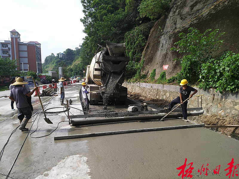 ????9月13日,白云路梧州八中路段正在鋪設混凝土路面。