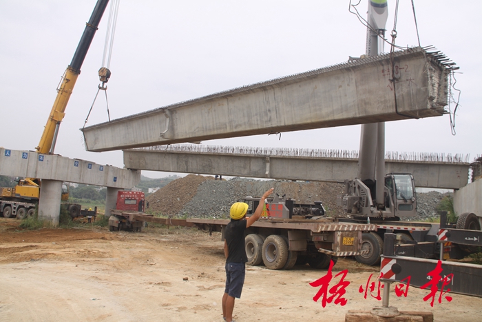 9月14日,藤縣杉花根大橋在架設(shè)引橋預(yù)制梁。