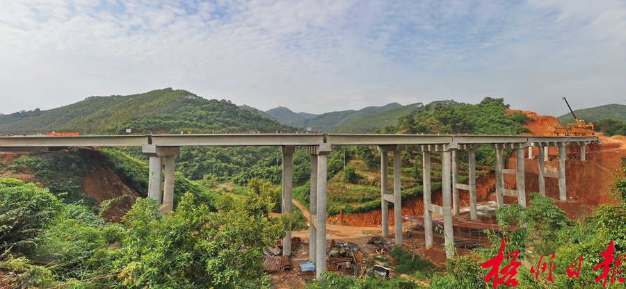 9月15日,位于萬秀區龍湖鎮塘源村的環城高速公路底沖大橋正開展橋面施工。