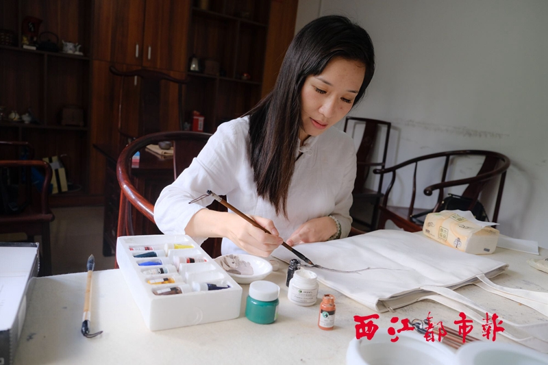 ??? 在衣服和帆布包上寫意花鳥畫,如此創(chuàng)意別出心裁。在李正娛看來,這是她對傳統(tǒng)文化傳承的一種方式。