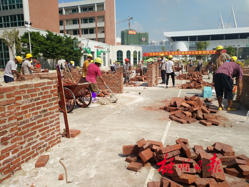 ??? 9月23日,由市農民工工作領導小組主辦的廣西第四屆農民工技能大賽市級復賽在梧州職業學院舉行,來自各縣(市、區)及市直企業的代表隊參加。圖為砌筑工選手正在進行比賽。