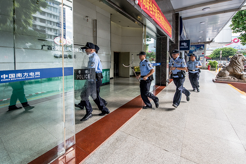 ????下午15時,演練正式開始。在文瀾路梧州供電局電力調度辦公樓門口,兩名不明身份人員手持武器劫持梧州供電局一名員工:“立刻停止向梧州市區供電,如不答應我們就要殺害人質!”隨后,強行進入該局電力調度大樓電力調度值班室,要求電力調度值班人員停止向梧州市區供電,企圖制造市區大面積停電。