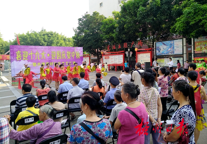 國慶節、中秋節來臨之際,我市部分街道、社區相繼舉辦慶?;顒?。昨天,萬秀區角嘴街道辦、新華社區舉辦“喜迎十九大·迎國慶賀中秋”共建美好社區文藝演出。李鴻榮 攝