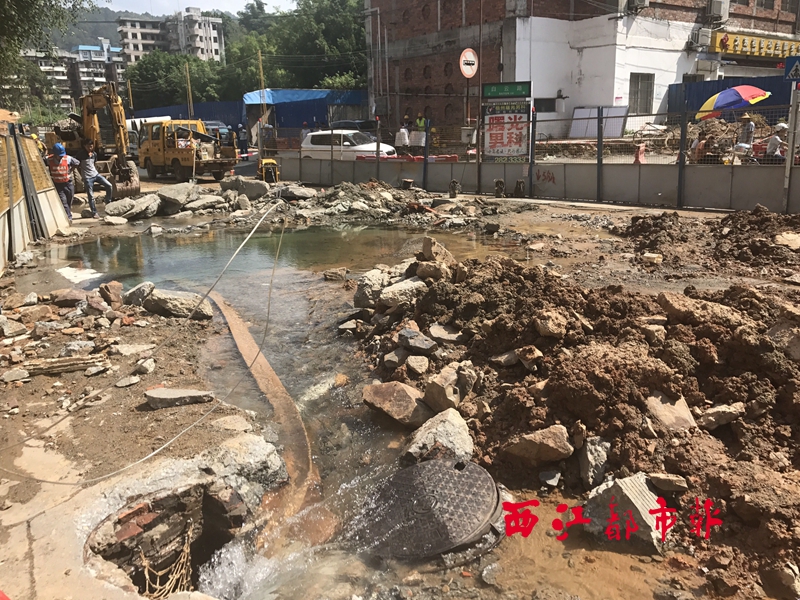 ??? 當天9時許,記者接報趕到現場看到,發生破損的地下水管直徑約有半米,位于白云路與阜民路交界處的一個施工工地下,水管內還有自來水不斷流出。據工地對面經營鮮花店的黎女士介紹,當天7時30分左右,該工地突然傳出一聲巨響,隨后,大量自來水從工地的地面涌出。這也導致了黎女士的花店及周邊商家店鋪的自來水供應一度中斷,在事發后約2小時才恢復。