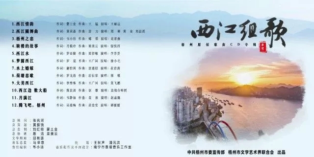 ????《西江組歌》12首歌曲創作圍繞古絲綢之路嶺南沿線的人文歷史、自然生態、風土人情等文化元素,在傳統水上民歌的基礎上進行創作,立于共鳴易于傳唱,具有梧州元素、廣西特色的民族音樂形象。 ????為了創作出這些歌曲,市委宣傳部、市文聯、市音樂家協會組織音樂家們,深入到各地廠礦車間、鄉鎮村寨、社區街道、江上洲島去生活、采風,委托自治區專家從征集到的歌詞中評選出12首優秀歌詞,并邀請自治區甚至是國家級的作詞家、編曲家,對歌詞、歌曲進行了修改完善。 ????而《西江情韻》是《西江組歌》12首歌曲中的第一首歌曲,也是主打歌曲,曾多次在市內舉辦的重大活動中作為表演曲目演唱,歌詞大意是謳歌西江的壯美,由國內著名歌手王麗達原唱。  ??? 同時,為進一步深化“深入生活,扎根人民”主題實踐活動,廣泛宣傳梧州市的區域優勢和改革開放成果,我市邀請國內著名詞曲作家鄭楠、鄭秋楓、陳洛、劉佳等藝術家到梧州市開展采風創作活動,感受梧州歷史文化和現實生活。經過三個多月的努力,藝術家們創作了12首歌詞,并通過與梧州藝術家進行座談和交流,廣泛聽取意見和建議,不斷雕琢作品,最終從中選出《千年古都故事多》、《神奇的樹葉》等6首精品進行譜曲。  ??? 這些優秀作品形式多樣,包括合唱、男女聲獨唱、大小提琴演奏等多個版本,既有曲韻悠揚的梧州頌歌,也有富有現代旋律的動感歌曲,還有具有本土民歌曲調的六堡茶歌和歡快活潑的少兒歌曲。 ????作品主題聚焦中國夢,傳遞正能量,彰顯梧州特質,體現文化的傳承、創新和雅俗共賞,從不同的側面反映了梧州市的風土人情、歷史文化和社會發展。 ????舞蹈創作可圈可點