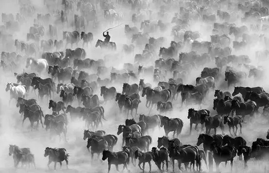 《萬馬奔騰》獲第七屆廣西區人民政府文藝創作銅鼓獎。 ????據《萬馬奔騰》的作者歐偉文介紹,“《萬馬奔騰》創作于2013年,2013年國慶期間,我到甘肅創作。下午近四點,幾百匹馬從山坡前以排山倒海之勢奔跑而過,氣勢磅礴,場面震憾;長時間的無雨,地面干燥,群馬跑過之處塵土飛揚,使場面虛實變幻,幾個趕馬人時而隱沒在塵土中,時而突現在馬背上。”攝影作品最后處理成黑白效果,保留了豐富的影調和層次,有水墨畫的效果。