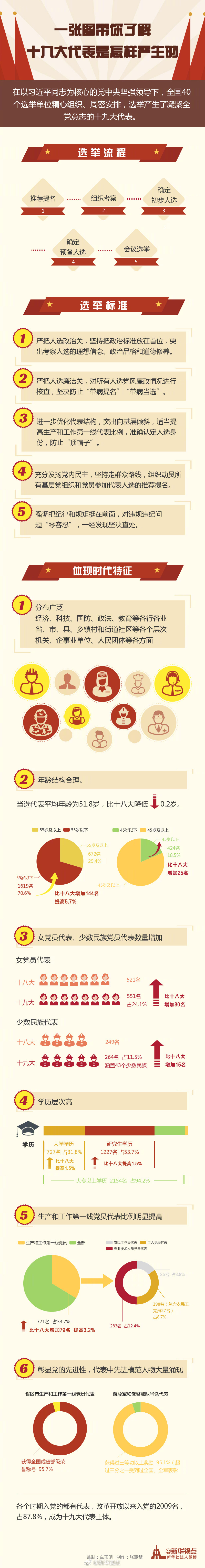 ????據中央組織部有關負責人介紹,當選代表總體上符合中央規定的條件,具有較高的思想政治素質、良好的作風品行和較強的議事能力,在生產工作中做出了顯著成績。十九大召開前,十九大代表資格審查委員會還將對當選代表進行資格審查。