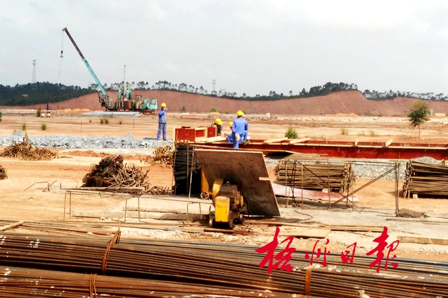 ????10月4日是中秋節,位于梧州進口再生資源加工園區的廣西頂鋒不銹鋼有限公司的年產30萬噸冷軋不銹鋼板帶項目建設如火如荼地進行。十多名工人頂著烈日進行廠房基礎施工測量,不遠處數臺大型打樁機已就緒,即將進入樁基礎施工階段。現場施工負責人介紹,30萬噸冷軋不銹鋼板帶項目是再生園區的重點產業項目,國慶假期正值施工黃金季,項目部安排數十名施工人員加班加點,各司其職,為的是爭取項目早日完成工程建設。在粵桂合作特別試驗區,產業項目和基礎設施項目同步推進,江南片區的中興、臺灣科技產業園、紅牌、碧清源、大華、豐冠二期、中盟等多個重點項目已開工正在加快建設,豐歌低碳科學建造、豐冠新能源一期、航天北斗、云龍酒業等項目已相繼投產,落戶江北片區的貝朗斯醫療器械生產基地、新粵西樓紙包雞、中允食品等產業項目也在有序推進。