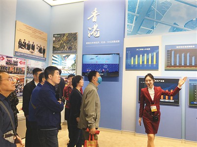 ????在與港澳相關的單元,國家發改委與粵港澳三地政府簽署《深化粵港澳合作推進大灣區建設框架協議》儀式、中央政府為澳門特區劃定水域、加強對港澳的物資供應保障等照片,體現了中央政府對香港、澳門依法施政的全力支持;香港特區政府與故宮博物院簽署合作協議、澳門大學橫琴校區啟用等內容的展示讓不少觀眾感受到內地與港澳之間交流的熱絡。