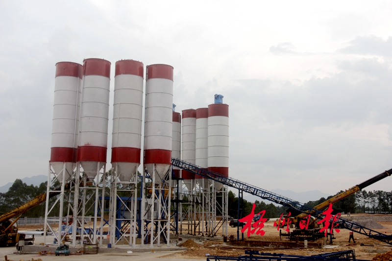 ????賀州至巴馬高速公路項目動工后,蒙山路段項目部抓緊儲料場建設(shè)。目前,該儲料場正在安裝、調(diào)試混凝土攪拌站設(shè)備。 江永錄 攝