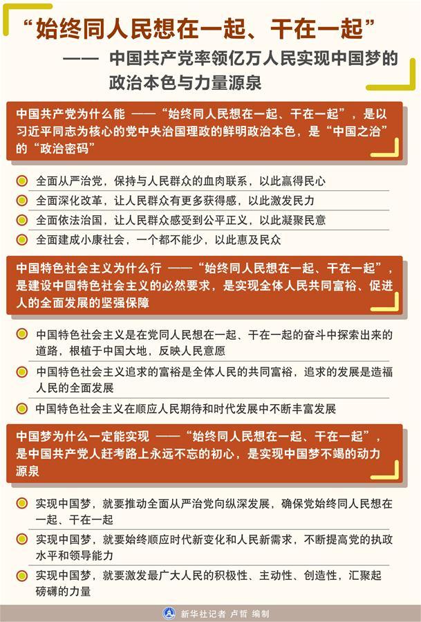 ??? 圖表:“始終同人民想在一起、干在一起”——中國共產黨率領億萬人民實現中國夢的政治本色與力量源泉 新華社記者 盧哲 編制