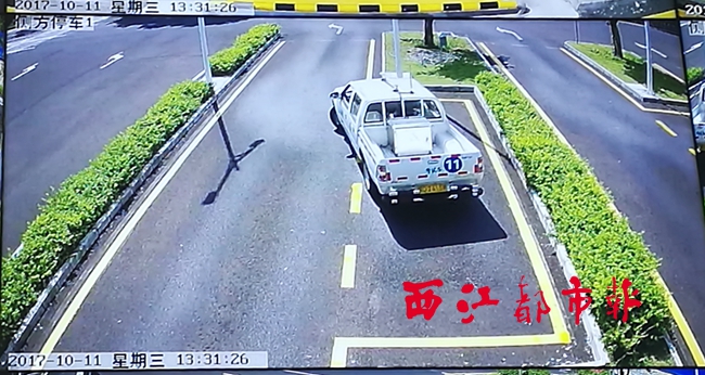 一名考生正在進行側方停車項目,考場內的監控屏幕能全程記錄考試過程。西江都市報記者 陳雨燕 攝