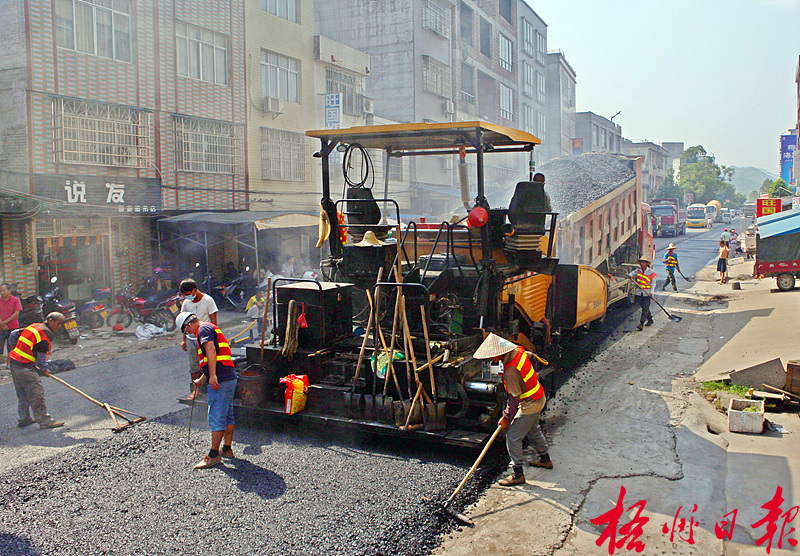 ????10月11日,容藤二級公路大修工程進行最后一段路面鋪裝。