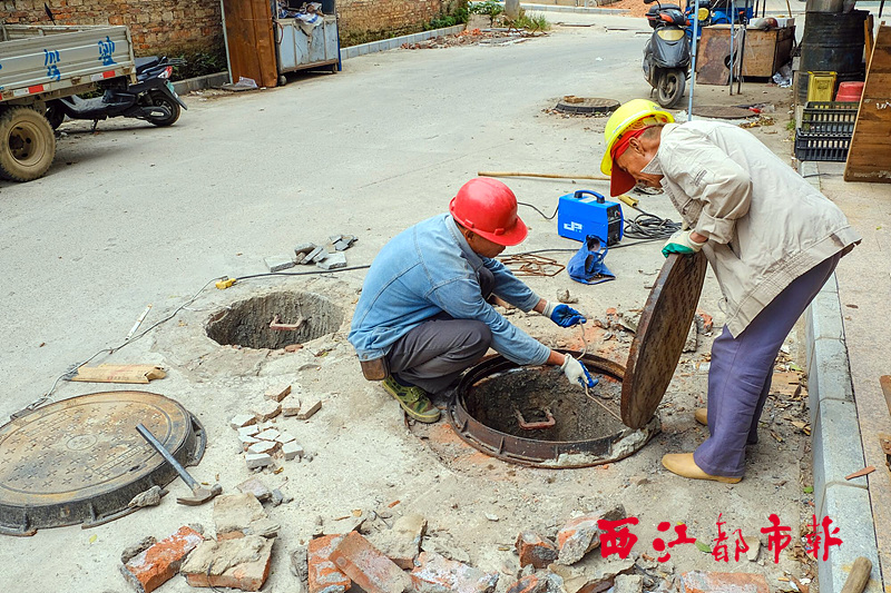 ????10月16日,在富民片區棚戶區改造項目工地,施工人員正在安裝雨水井蓋。