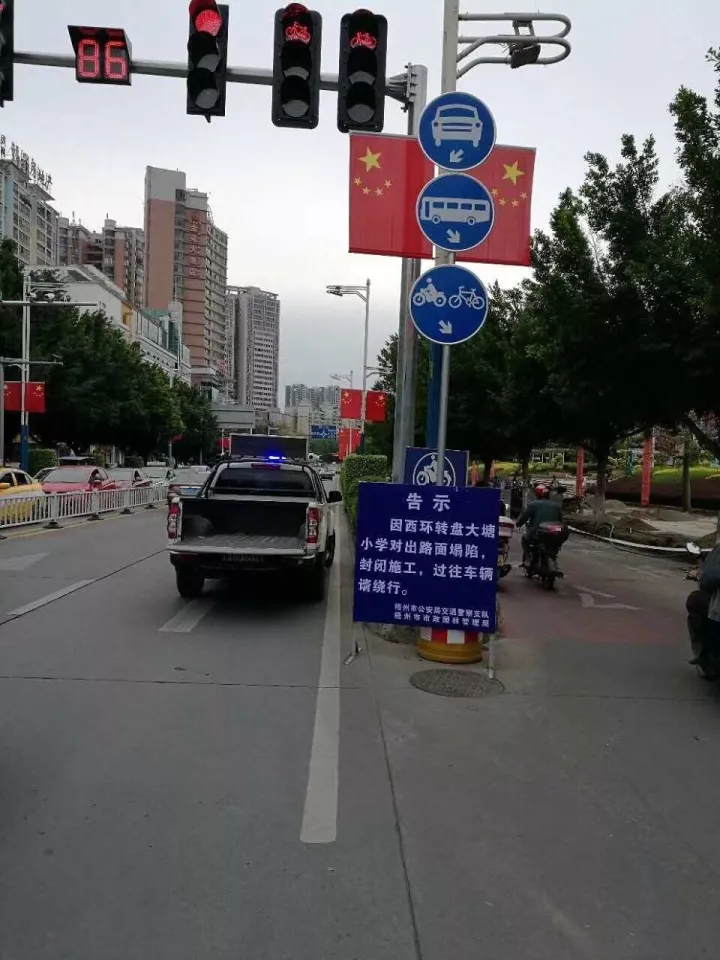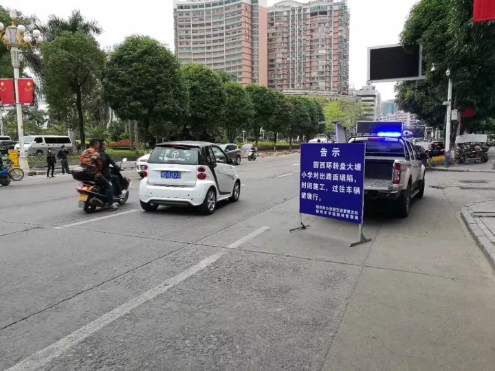 ????大塘小學對出路面出現塌陷面積增大的現象后,交警部門馬上采取措施,安排警力在現場疏導交通,并出于安全考慮,于今早將大塘小學往西環路方向的機動車道封閉,除兩輪車外,禁止一切車輛通行。“交警部門建議,從金暉車站往市區方向的車輛請駛往新興三路、西堤路,避開新興二路及西環路的擁堵路段;從大塘及兩廣方向前往西環路的車輛也請繞行。”長洲交警大隊民警唐蘇輝說。