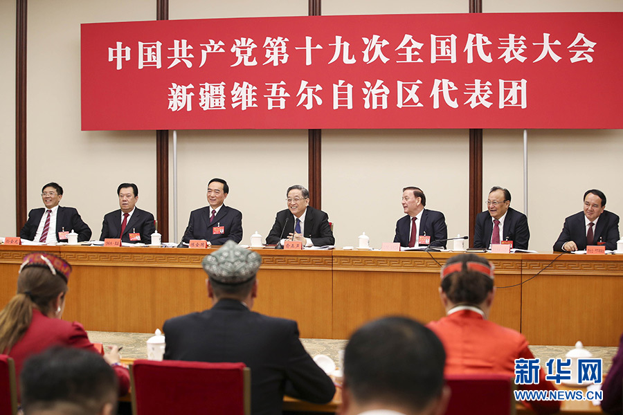 10月18日,俞正聲同志參加黨的十九大新疆代表團(tuán)討論。新華社記者 謝環(huán)馳 攝