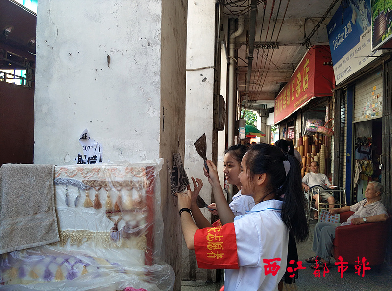 ????今年9月13日,梧州一中的學生志愿者在大南路清理墻上的小廣告,為創建文明城市、文明社區貢獻力量。 李鴻榮 攝