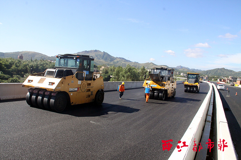 ????該路段主線全長29.94公里,計劃總投資26億元。目前,該項目路段還有約20公里尚未鋪設(shè)最后一層瀝青路面,預(yù)計一個星期內(nèi)即可完成。黃群禮 攝