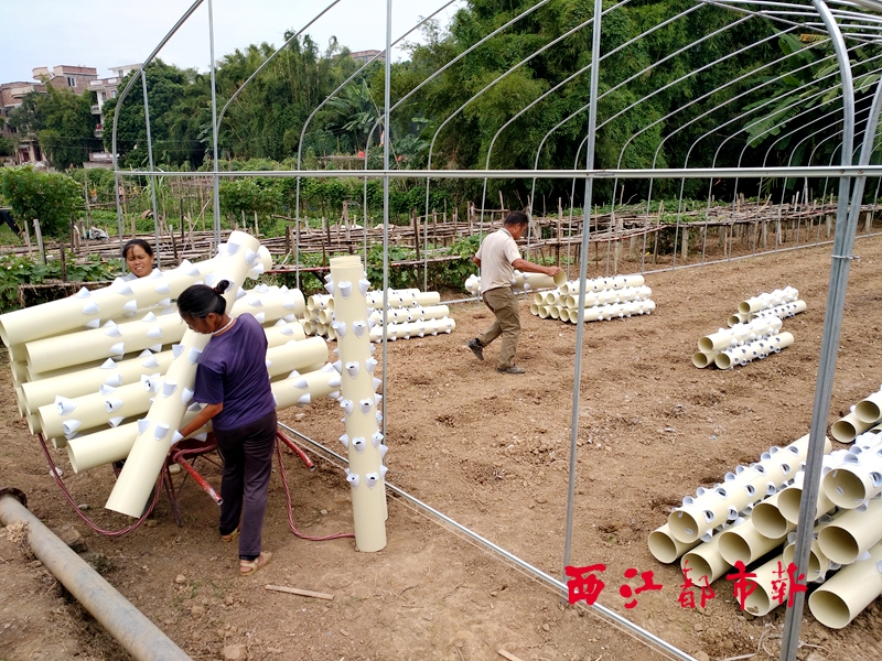 工人們在泗洲村草莓采摘園基地內施工。西江都市報記者 蒙敏瑩 攝