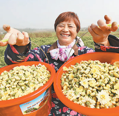 江蘇連云港贛榆區(qū)班莊鎮(zhèn)圈洪爽村的菊農(nóng)正在采摘杭白菊。
