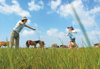 人們在塞罕壩機(jī)械林場內(nèi)觀光。