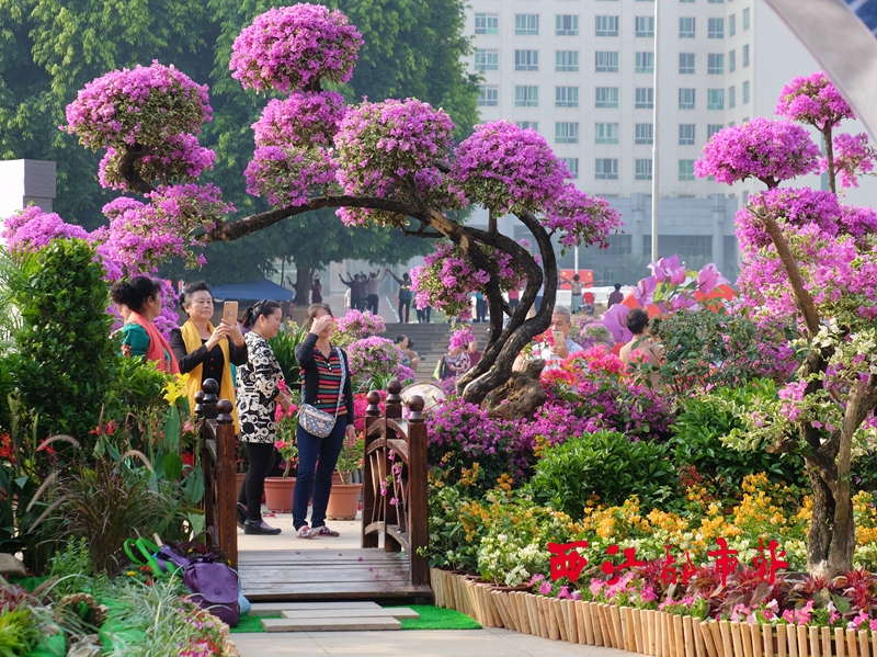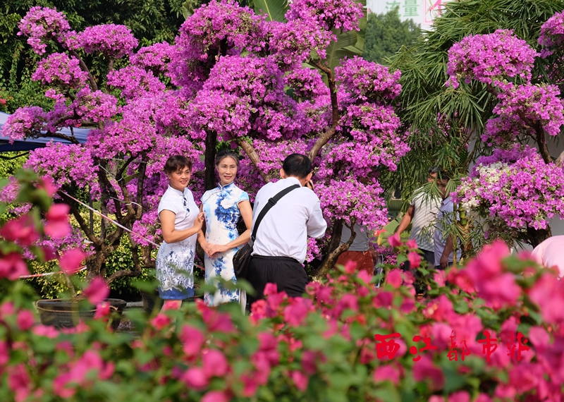 ????據(jù)了解,寶巾花又稱勒杜鵑、三角梅、葉子花等,有紫、紅、深紅、橙紅、橙黃、白等葉色,花開之時(shí),五彩斑斕,一些重瓣品種更是豐盈飽滿、花色艷麗,深受人們喜愛(ài)。自1990年梧州市將寶巾花確定為“市花”以來(lái),梧州市寶巾花展已舉辦了十七屆。
